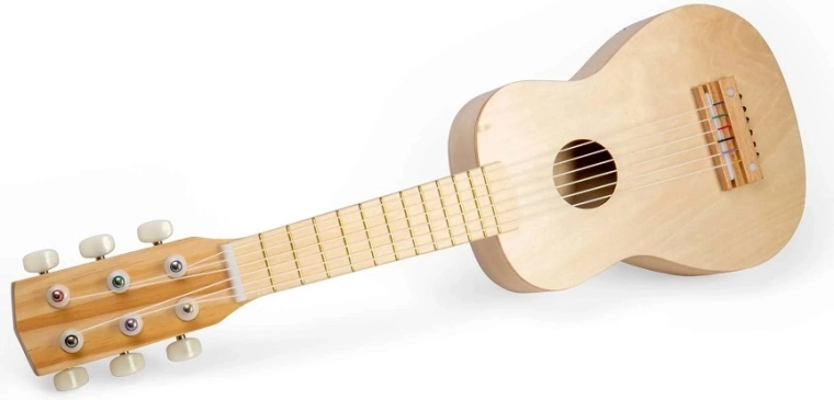 Denne naturlige træ-guitar åbner en verden af rytmer og melodier for børn. Med seks stemmelige strenge kan de prøve de første trin, udvikle musikalsk sans og selvudtryk. Den robuste konstruktion i kvalitetstræ er designet til daglig udforskning.