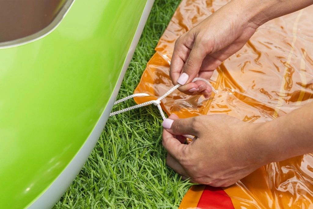Den integrerede sprayer i vulkanbuen tilsluttes nemt haveslangen og skaber behagelige vandeffekter, der både køler og underholder.