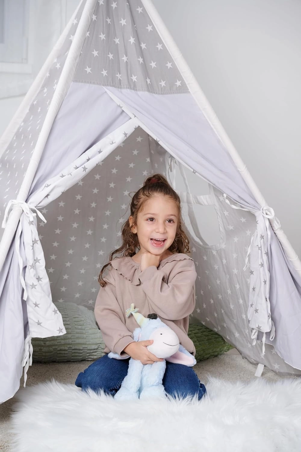 Den siddende udformning holder formen, så den passer på hylden, i læsehjørnet eller i tipi-teltet. Smuk dekoration og legetøj i ét.