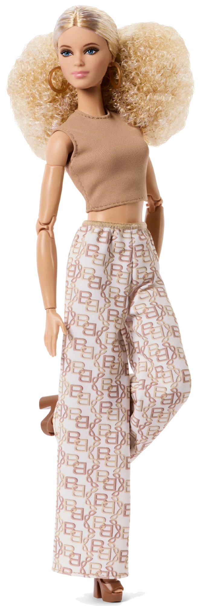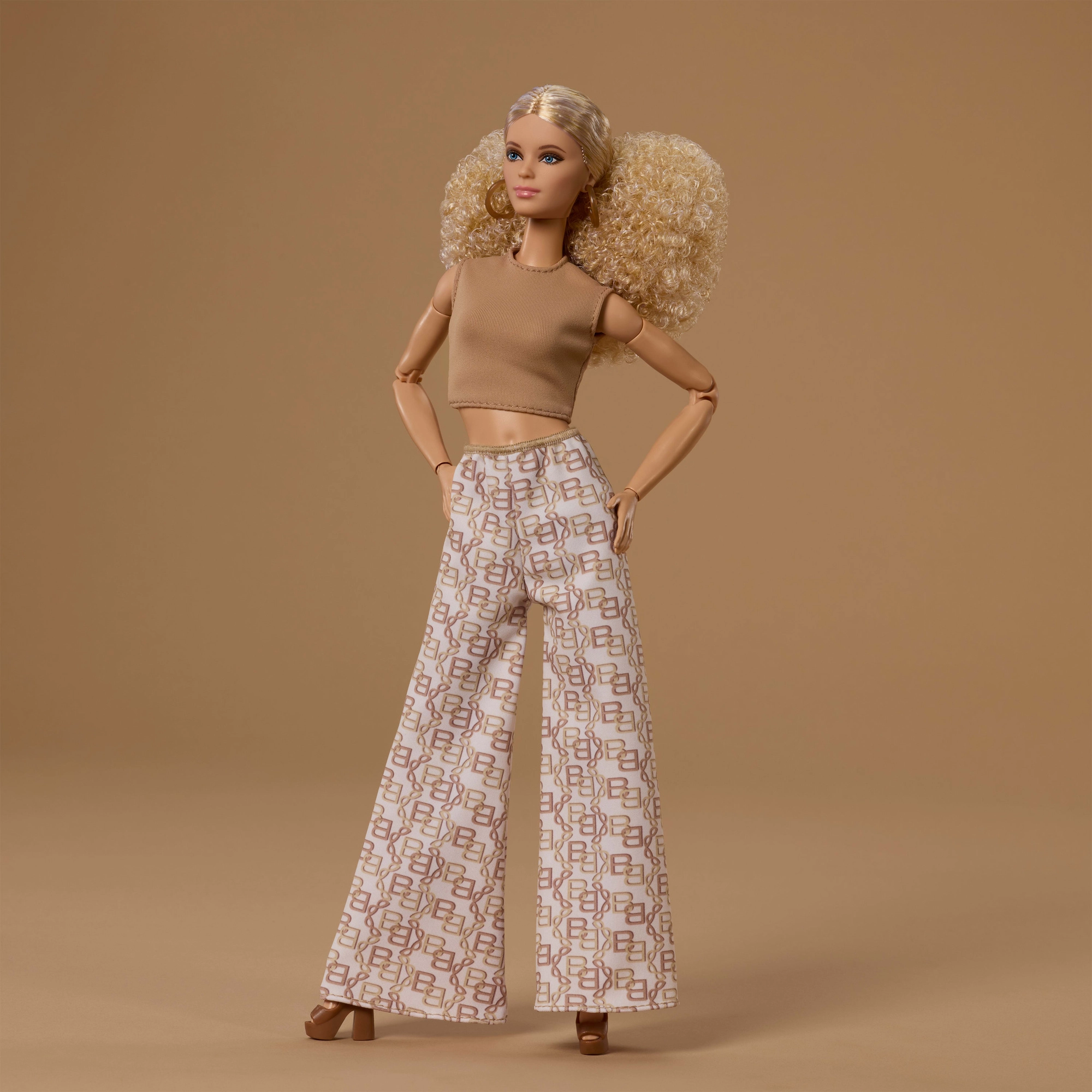 Stilen går i neutrale, tidløse nuancer – lysebrun, hvid og gylden. Dukken har en elegant top og lange, vide bukser, som passer perfekt sammen med andre BARBIE-accessories. Takket være den standardiserede højde på ca. 29 cm er den kompatibel med de fleste BARBIE-tilbehør og -møbler.