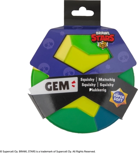 BRAWL STARS Squishy Gem er et stilfuldt antistress-redskab inspireret af det populære mobilspil. Takket være det ekstra bløde, elastiske materiale er den skøn at klemme på, vender tilbage til sin oprindelige form og hjælper med at frigøre spændinger i løbet af dagen. Det farverige design med gul stjerne fanger øjet ved første blik og glæder både spillere og samlere.