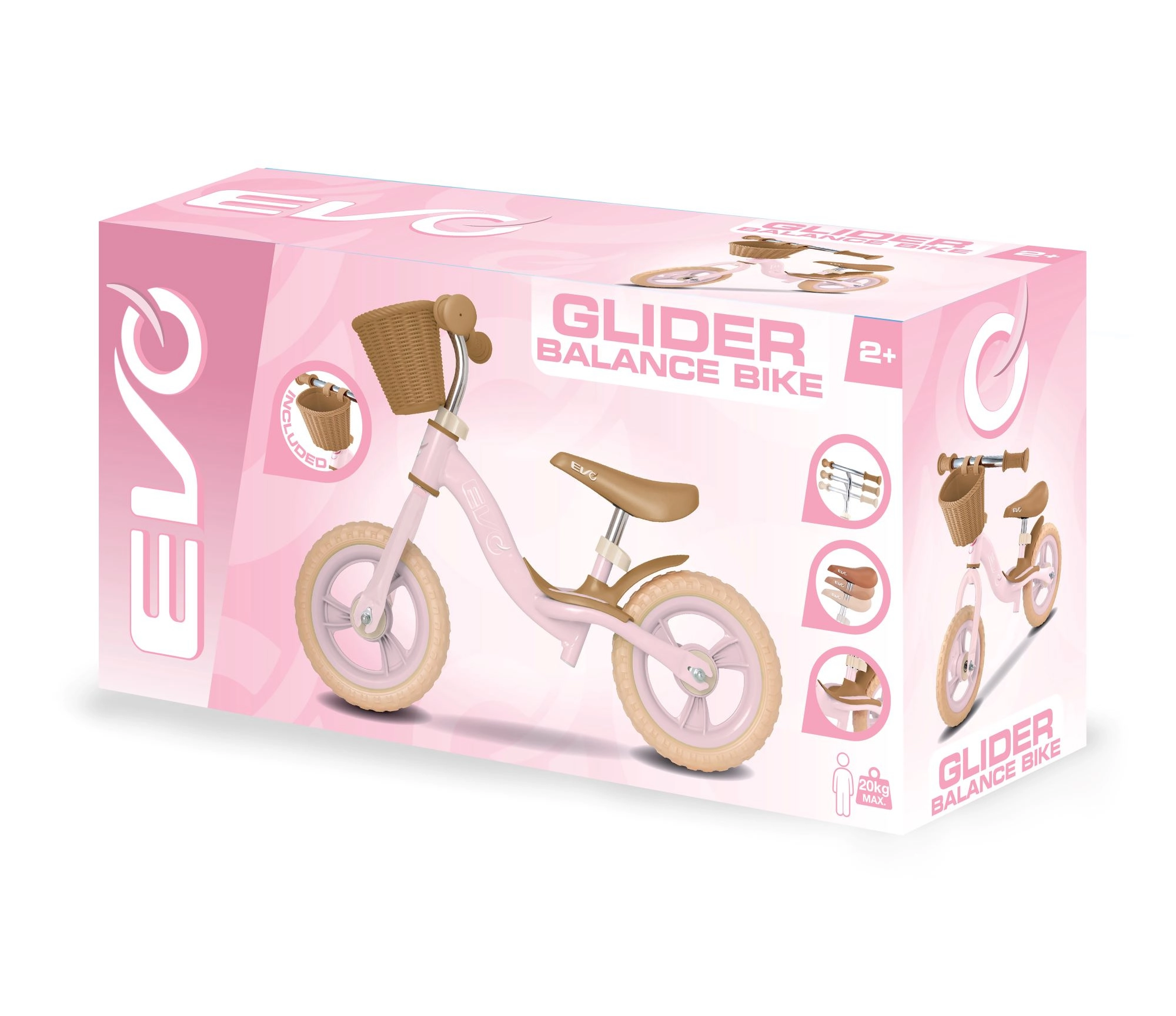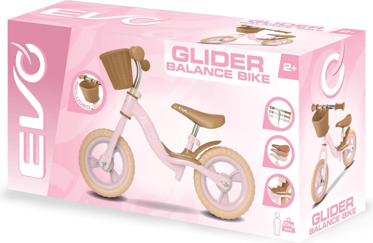 Den stilfulde børnebalancecykel EVO Glider er den ideelle første cykel for små ryttere fra 2 år. Takket være den lette ramme, justerbart sæde og styr samt vedligeholdelsesfrie 10" EVA-hjul hjælper den naturligt med at udvikle balance og koordination. Den praktiske frontkurv klarer yndlingslegetøjet, og den integrerede fodstøtte understøtter træning af stabilitet under kørslen.