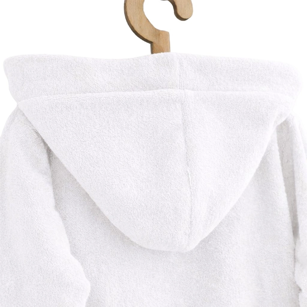 Den bløde børnebadekåbe NEW BABY i kvalitetsfrotté giver øjeblikkelig komfort og varme efter badet. Takket være den absorberende 100% bomuld, den praktiske hætte og den fastpåsyede bælte holder barnet sig dejligt varmt, og intet bliver væk. Dybbe lommer rummer småting; badekåben er ideel efter badet derhjemme, i svømmehallen og ved havet.