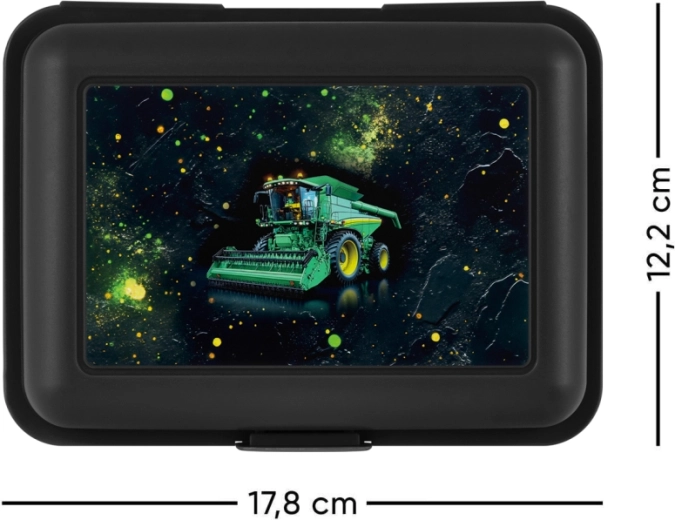 Leder du efter en holdbar og stilfuld madkasse til skole, udflugter eller arbejde? Baagl madkasse med traktor-motiv udmærker sig ved enkel betjening, praktisk inddeling og sikker lukning. Det sorte design er universelt og passer nemt til andet udstyr.