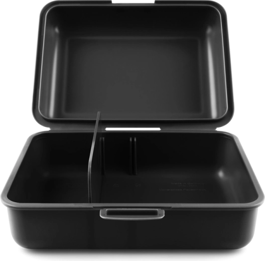 Takket være den indvendige skillevæg kan du nemt adskille frugt, brød eller små snacks. Lukning med én lås sikrer, at kassen ikke åbner sig under transport. For at bevare materialets og printets kvalitet anbefales det ikke at vaske i opvaskemaskine.