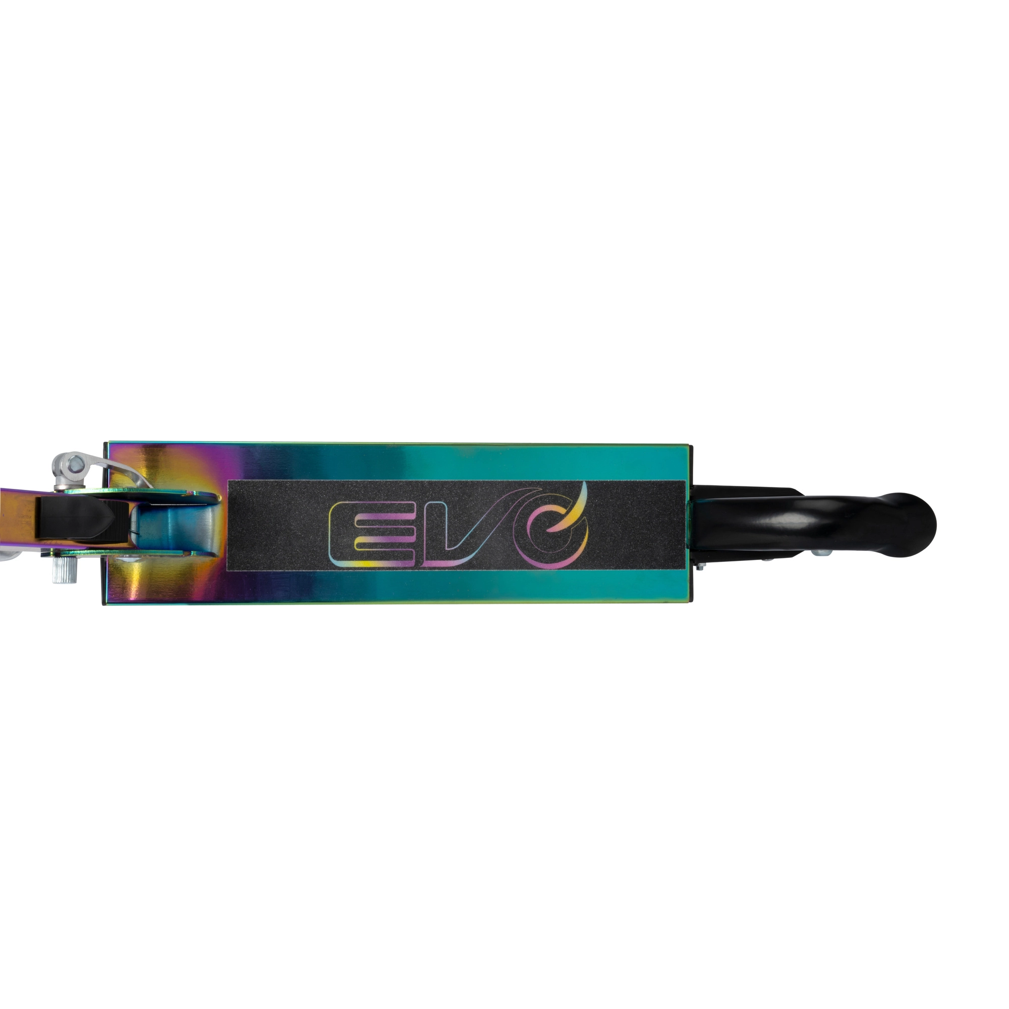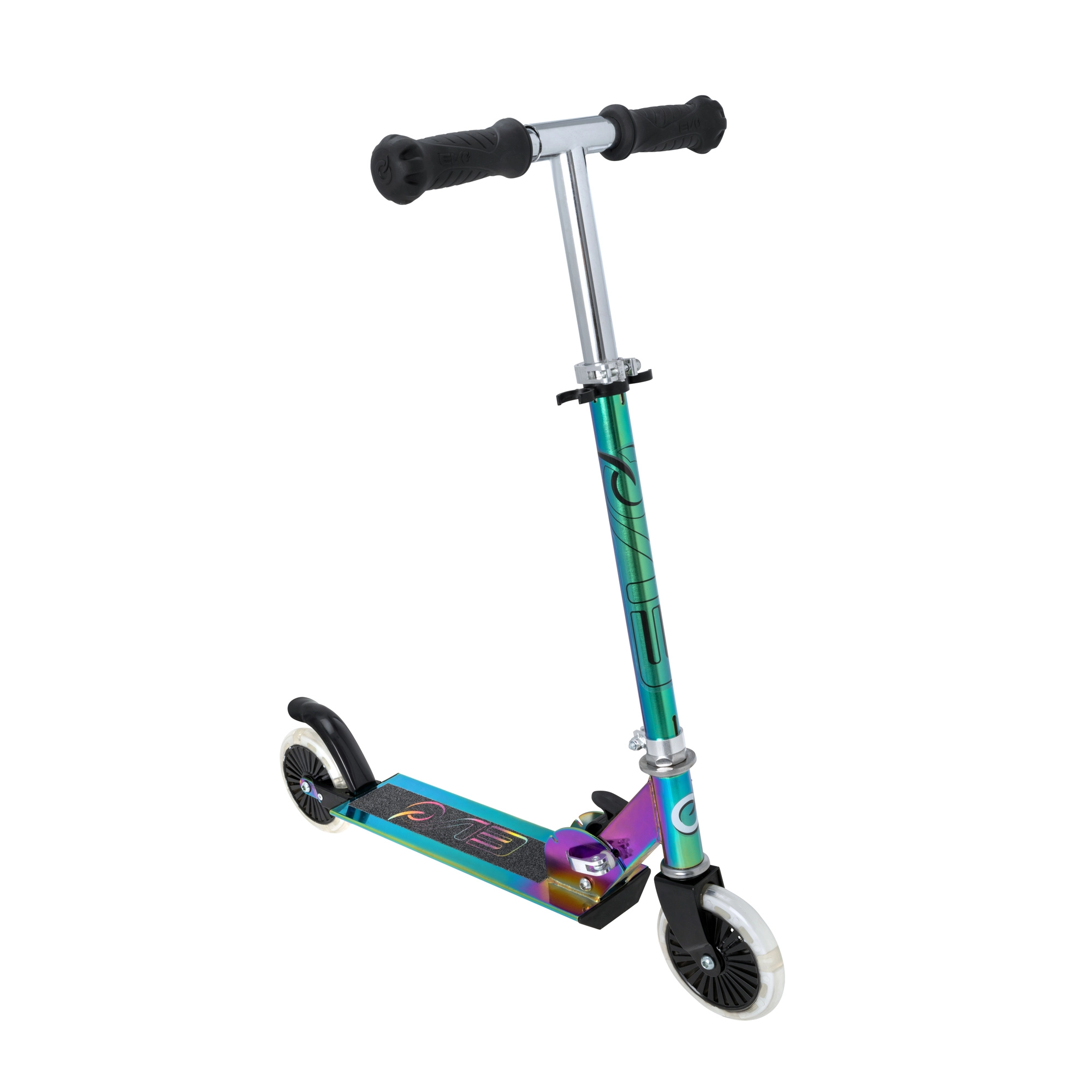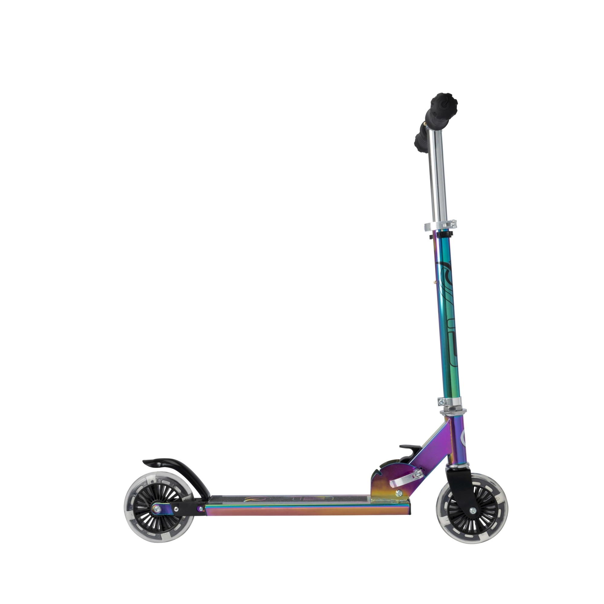 EVO Light Up Neochrome-scooteren er et fremragende valg til små ryttere, der vil skille sig ud. Takket være det justerbare styr (ca. 67–77 cm) vokser den med barnet, foldemekanismen gør transport og opbevaring let, og den holdbare metalkonstruktion med skridsikkert trin giver tryghed under kørslen.