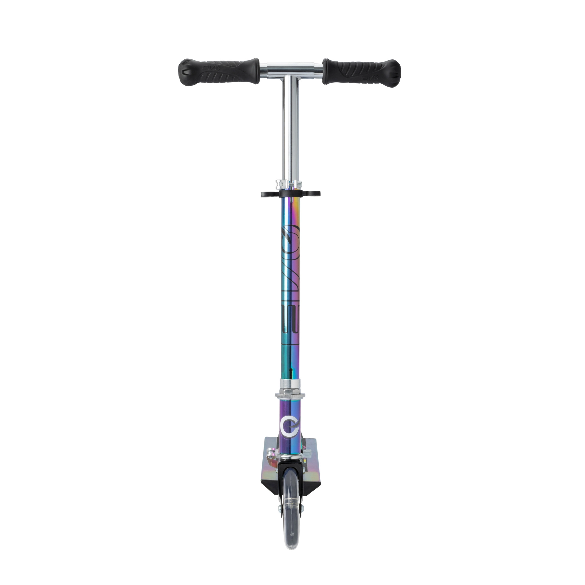Lysende hjul med ABEC-5 lejer gør hver tur sjovere og sikrer en glat og stille kørsel på jævne underlag. Den bageste skærm fungerer som bremse til hurtig og intuitiv standsning. Det moderne neochrome-look fanger øjet ved første blik og fremmer glæden ved bevægelse samt udvikling af balance og koordination.