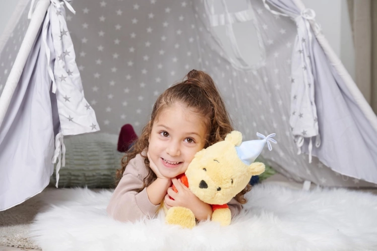 Det bløde, behagelige materiale gør bamsen til den perfekte ledsager til både søvn og afslapning. Børn vil elske den ved første berøring.