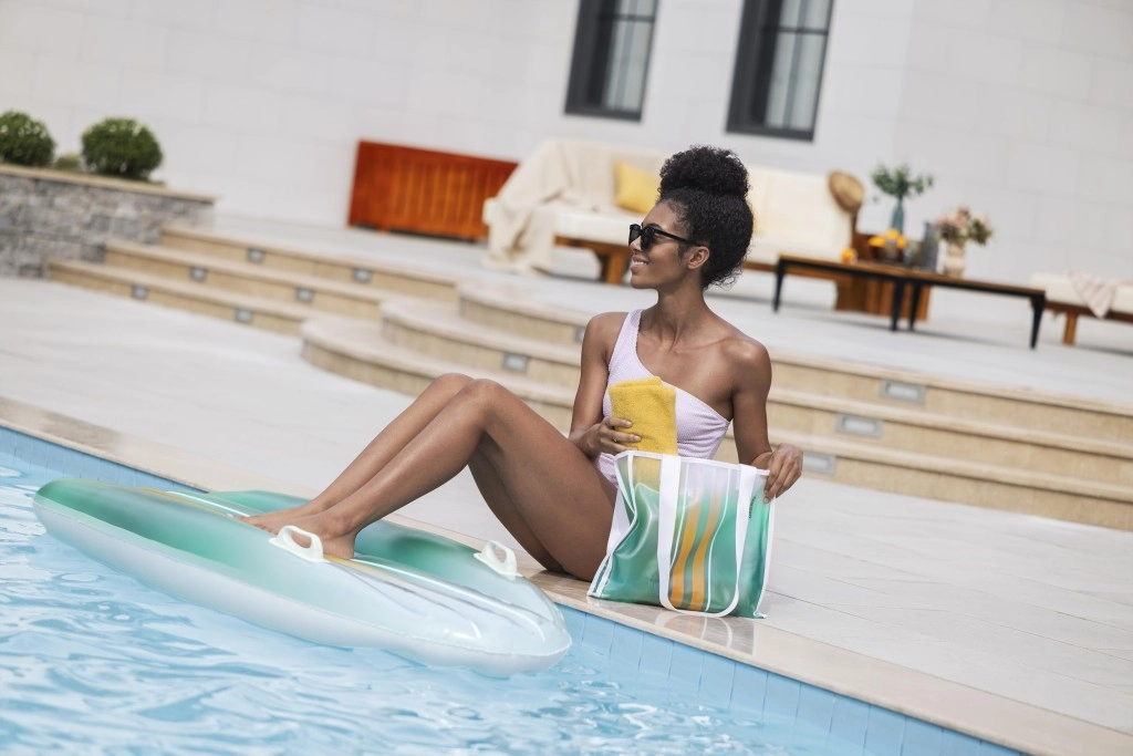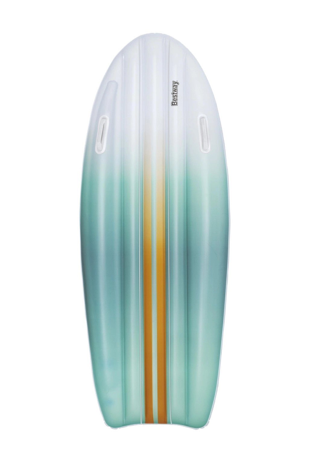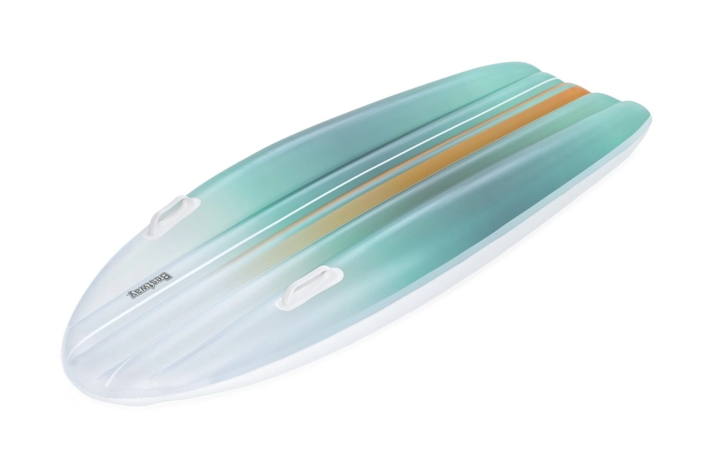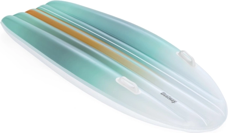 BESTWAY TAHITI-sættet kombinerer praktikalitet og stil til afslappede stunder ved vandet. Luftmadrassen med hydrodynamisk form og to integrerede håndtag giver tryghed ved ombordstigning og under afslapning. Det ensartede cyanfarvede gradientprint på både madras og taske ser friskt og sommerligt ud, så du skiller dig ud ved poolen og på stranden.