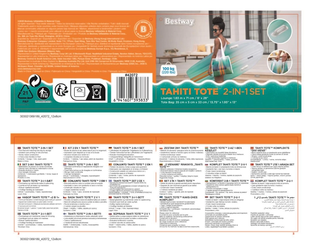 Nyd sommeren fuldt ud med sættet BESTWAY TAHITI 2-i-1 – en komfortabel oppustelig luftmadras med solide håndtag og en rumlig strandtaske i matchet design. Den stabile I‑beam-konstruktion, hurtig oppustning med ét luftkammer og bæreevne op til 100 kg gør dette sæt til et ideelt valg ved poolen, på søen eller ved havet.