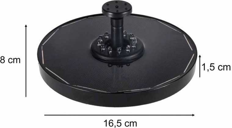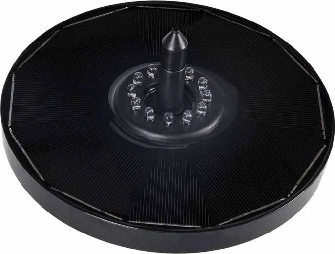 Elegant solcelledrevet springvand med en diameter på 16,5 cm, som forvandler din havedam eller fuglebad til en levende vanddekoration. Takket være solenergidrift fungerer det uden kabler, har automatisk LED RGB-belysning ved skumring og tilbyder 8 udskiftelige dyser til forskellige vandeffekter. Den stille drift understøtter cirkulation og iltning af vandet, mens den aftagelige pumpe gør vedligeholdelsen nem.