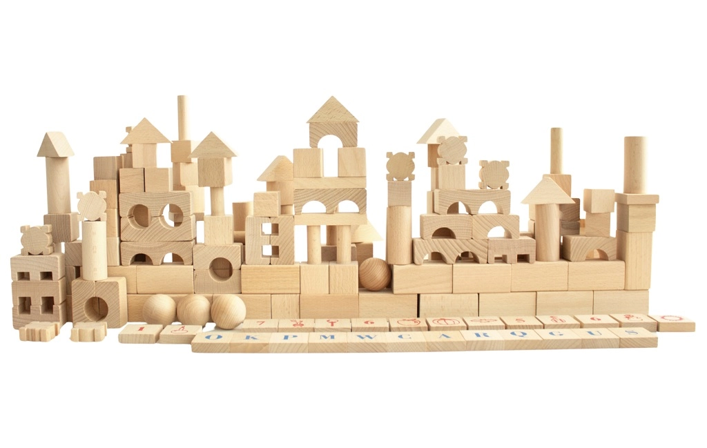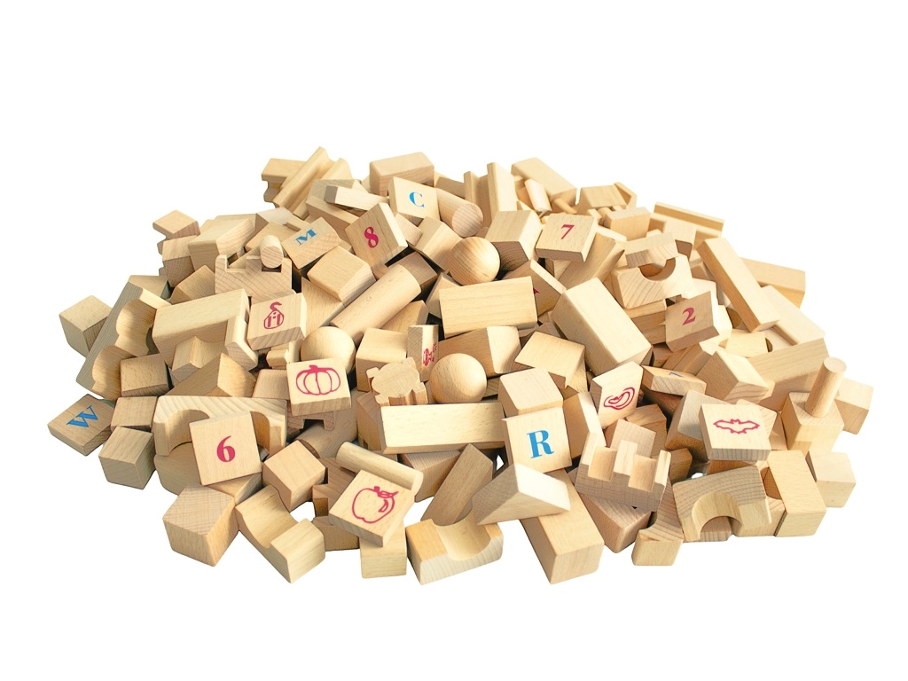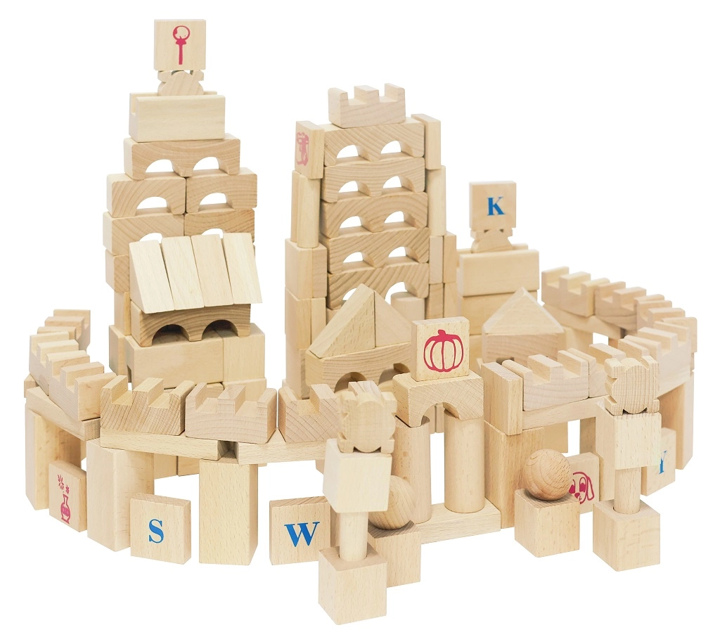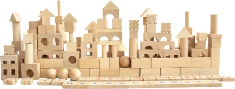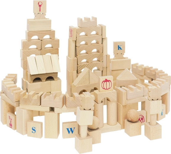 Oplev tidløs leg med det store sæt af naturlige træklodser. Med 220 forskellige former kan børn nemt bygge slotte, tårne, broer og hele byer. Den glatte overflade og den gode forarbejdning sikrer sikker leg, mens bogstaver, tal og symboler på udvalgte klodser støtter naturlig læring gennem leg.
