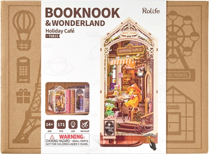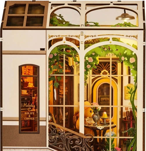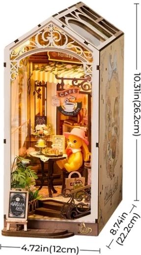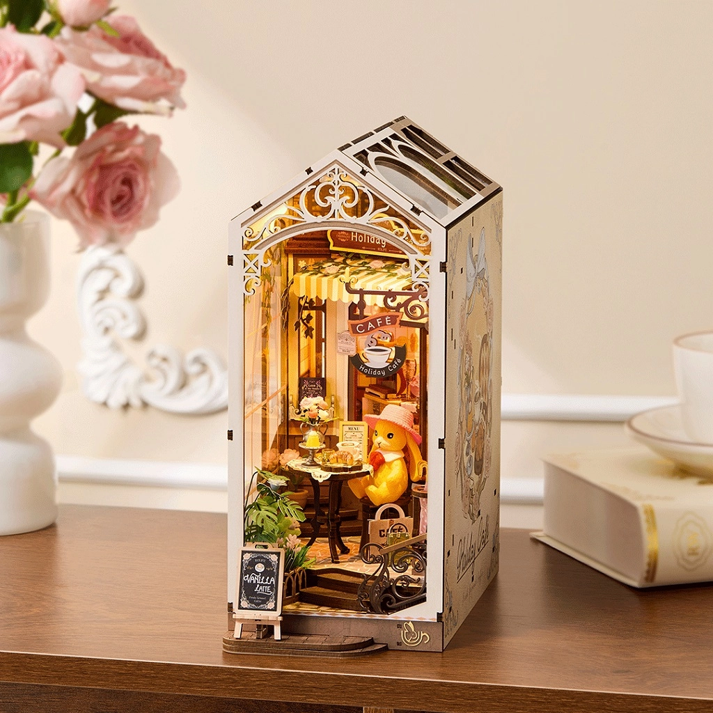 Denne detaljerede miniature bringer atmosfæren fra en hyggelig feriecafé direkte ind i din bogreol. Den åbne konstruktion med brede sidevinduer, realistiske tilbehør og varm LED-bagbelysning forvandler boghylden til en lille verden fuld af ro og nostalgi. Modellen fungerer samtidig fremragende som en stabil bogstøtte og en stilfuld dekoration til bord eller hylde.