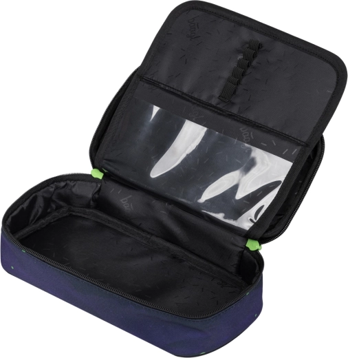 Penalhuset af etui-typen har et rumligt hovedrum med dobbelt udklapningsklap, indvendig lomme og vindue til skema. Posen er ideel til sko eller sportsting – med snørelukning med stærke snore kan den nemt bæres på ryggen. Alle dele af sættet er fremstillet af genanvendte, holdbare og aftørringsvenlige materialer og bruger YKK-lynlåse for lang levetid.