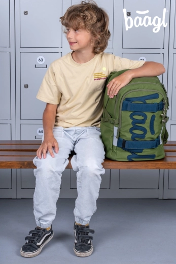 Den lette og holdbare skole rygsæk BAAGL Skate Olive GRS er ideel til elever fra 3. klassetrin. Den tilbyder anatomisk formet ryg, 3 rummelige rum, polstret lomme til 15" bærbar, stropper til fastgørelse af skateboard samt en række reflekselementer for sikkerhed. Fremstillet af genanvendt, vandafvisende materiale med kvalitetslynlåse YKK.