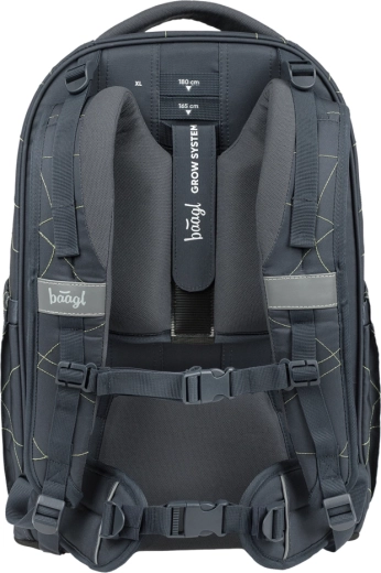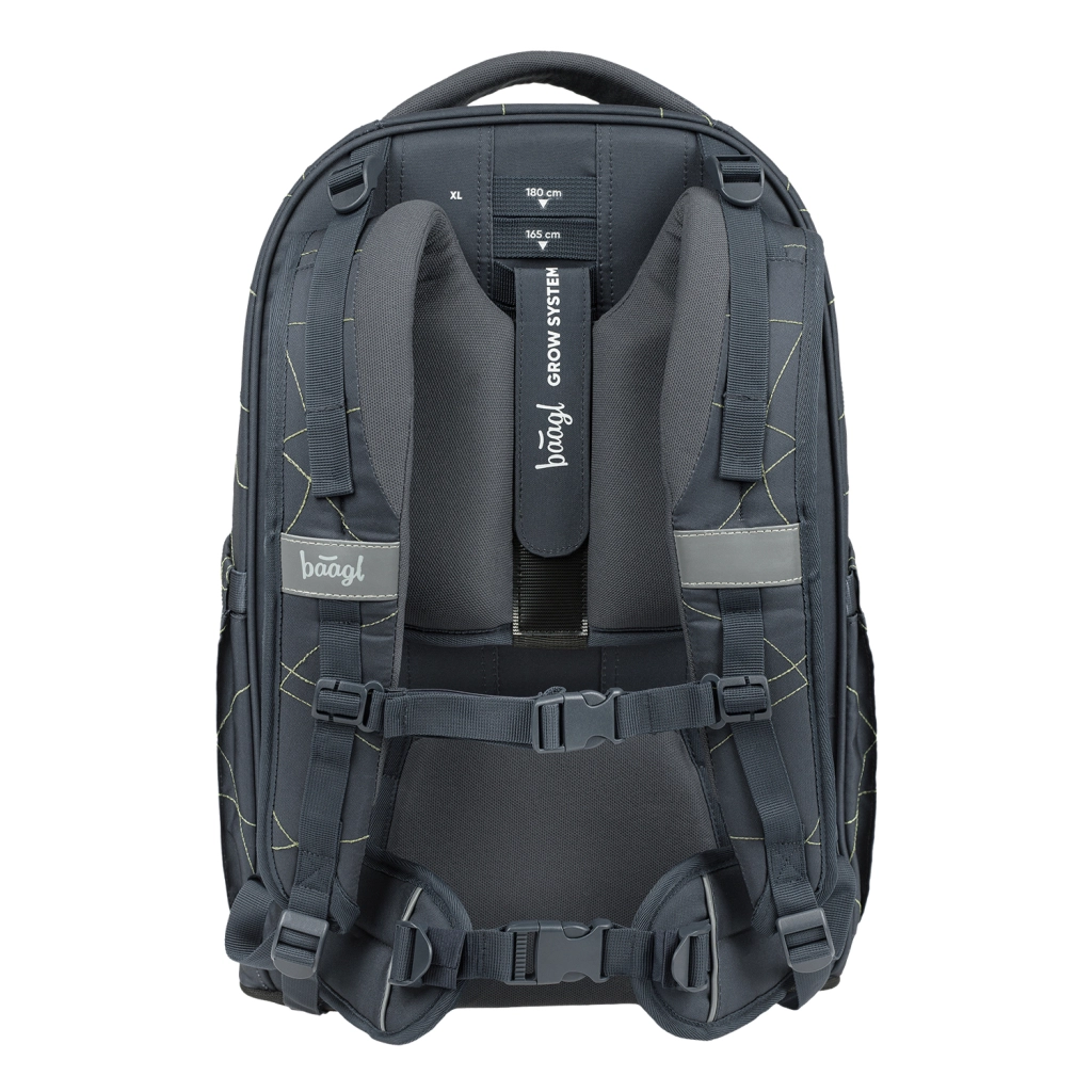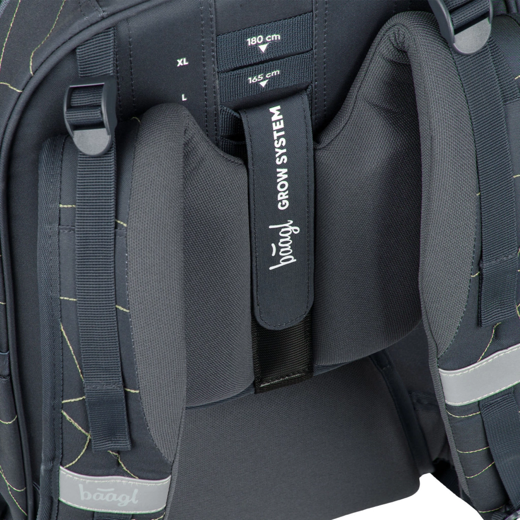 BAAGL Skate Max Wave GRS er en gennemtænkt rygsæk til elever og studerende i højden 135–185 cm. Takket være det glidende rygsystem vokser den komfortabelt med barnet i op til fire størrelser. Konstruktionen med EVA-forstærkning holder formen perfekt, den aftagelige hofterem øger stabiliteten, og ergonomisk formede stropper med fin mesh beskytter nakkeområdet.
