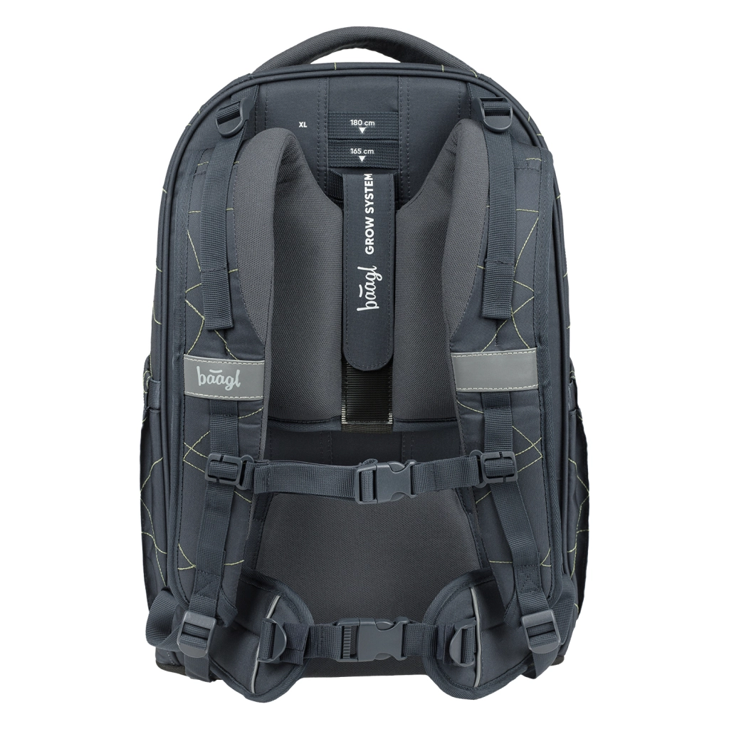 Skolesættet BAAGL Skate Max Wave er designet til elever cirka fra 3. klasse og op til gymnasiet (135–185 cm). Hovedstjernen er den lette rygsæk (1150 g) med højdejusterbart ryggesystem i op til fire størrelser, som tilpasser sig barnets vækst perfekt. Den faste EVA-forstærkning holder formen, det aftagelige hoftebælte sikrer stabilitet, og reflekser øger synligheden i tusmørke.