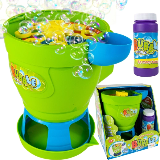 Skab et øjeblikkeligt bobleshow med denne pålidelige boblemaskine. Hæld blot boblevæsken i, tænd, og se hundredvis af perlende bobler flyve gennem rummet. Det kompakte kabinet og den stabile base gør den let at placere på bord, græsplæne eller terrasse.
