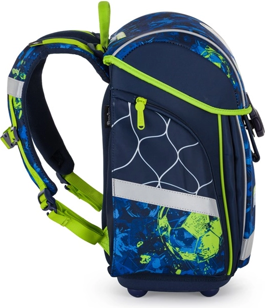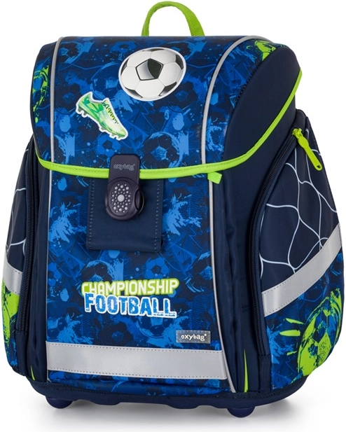 OXYBAG Premium Light fodbold skolesæt er designet til maksimal komfort og sikkerhed på den daglige vej til skole. Den lette konstruktion på kun 970 g, ergonomisk formet ryg og polstrede skulderstropper i åndbart materiale sikrer komfort hele dagen. Den praktiske inddeling med hovedrum med skillevæg, navneskilt og skema hjælper med at holde orden i bøger og hæfter.