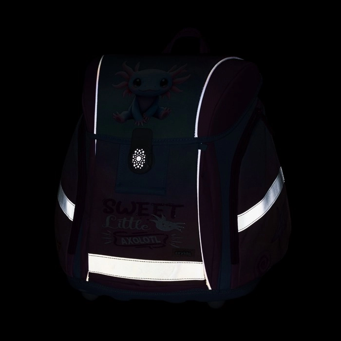Stilfuldt skolesæt til de mindste skolebørn med motiv af en sød axolotl. Sættet indeholder en letvægtsrygsæk Premium Light, en gymnastikpose og et enkeltsidet penalhus. Rygsækken har ergonomisk formet ryg, reflekselementer for sikkerhed, magnetlukning og fast vandtæt bund med fødder. Et ideelt valg til komfortabel og overskuelig opbevaring af skoleudstyr.