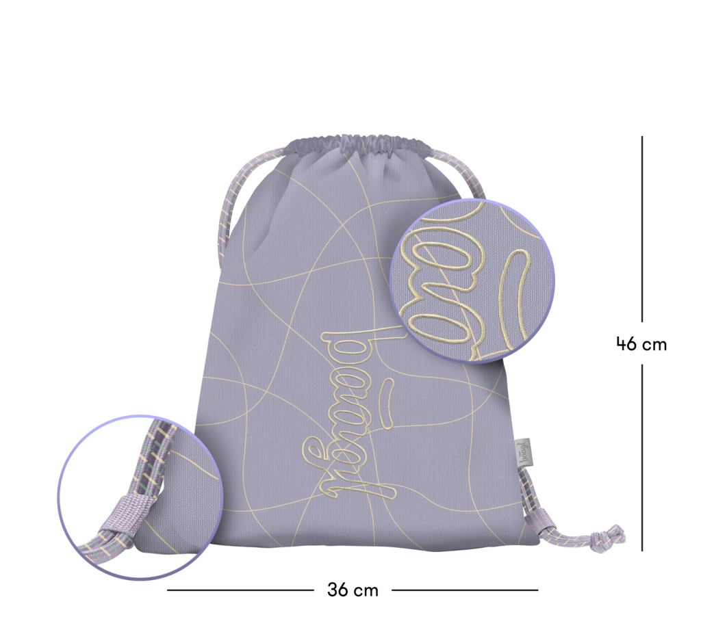 Praktisk pose til skiftesko, sportsudstyr eller hverdagens nødvendigheder. Takket være det lette, men slidstærke tekstil klarer den nemt daglig brug, og overfladen er let at holde ren. Det minimalistiske design i en sart lilla farve med bølgemønster giver dit outfit stil.