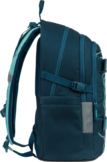 BAAGL skolesæt Skate Petrol er designet til daglig skolegang, fritidsaktiviteter og weekendoplevelser. Hovedstjernen er den lette rygsæk med stropper til skateboard, tre rum og polstret lomme til op til 15" laptop. Vandafvisende materialer med GRS-certificering, holdbare YKK-lynlåse og tydelige reflekser sikrer lang levetid og sikkerhed.