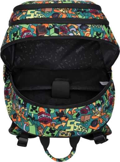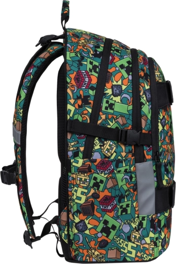 Takket være anatomisk formet ryg, justerbare stropper og reflekterende elementer er sættet sikkert og behageligt at bære. Alle dele er lavet af vandafvisende genanvendt materiale og bruger pålidelige YKK-lynlåse for lang holdbarhed. Designet forenet af MINECRAFT-motiver gør det nemt at holde en ensartet stil.