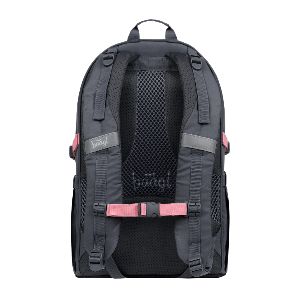 Komplet skole- og fritidsudrustning i et ensartet design. BAAGL Core-rygsækken tilbyder ergonomi for en sund ryg, gennemtænkt organisering til hverdagen og slidstærke materialer med GRS-certificering. Sættet suppleres af penalhus, pose, bæltetaske og laptopcover – alt matchet i pink Core Logo-stil.