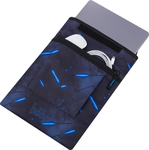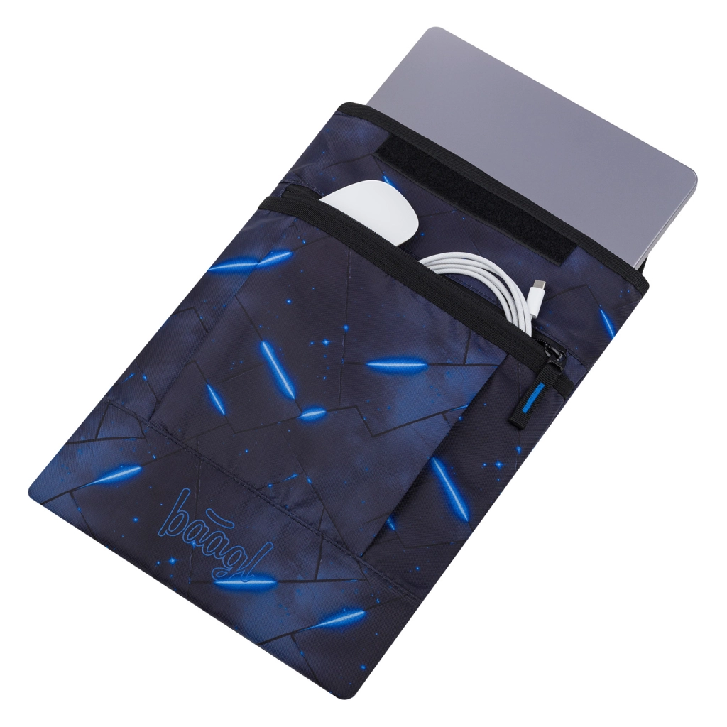 Takket være muligheden for at vælge mellem mange motiver kan du nemt matche etuiet med andet BAAGL-udstyr. Frontlommen rummer oplader, mus eller kabler, så du har alt praktisk lige ved hånden. Materialet opfylder Global Recycled Standard (GRS), hvilket bekræfter dets miljøvenlighed og ansvarlige produktion.