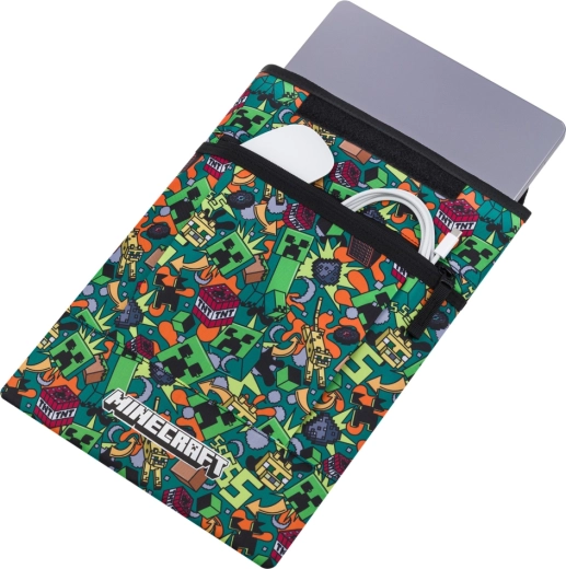 Stilfuldt og holdbart sleeve til bærbar op til 15″ med Minecraft Chaos-motiv fra Baagl, som sikrer pålidelig beskyttelse i hverdagen. Tilbyder vandskyende materiale, blød polstring mod stød og en frontlomme til tilbehør med YKK-lynlås. Fremstillet af 100% genanvendt materiale.
