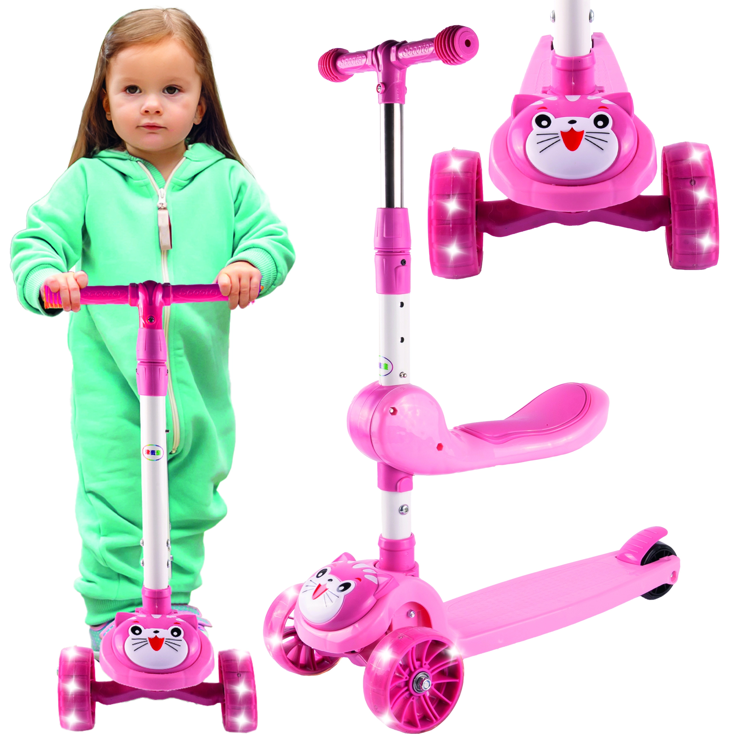 Dette trehjulede løbehjul til børn Kotek tilbyder stabil kørsel, justerbart styr og lysende LED-hjul for øget sikkerhed og sjov. Takket være skridsikker fodplade og bagfodsbremse er det ideelt til de første ture for små ryttere. Et praktisk sæde sikrer komfort på længere udflugter.