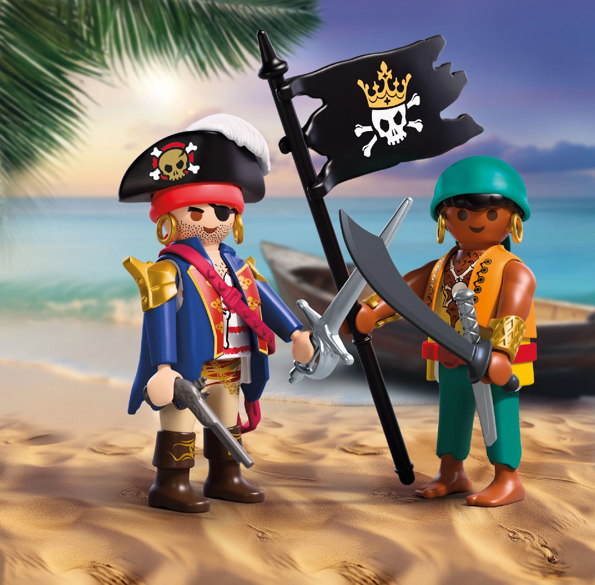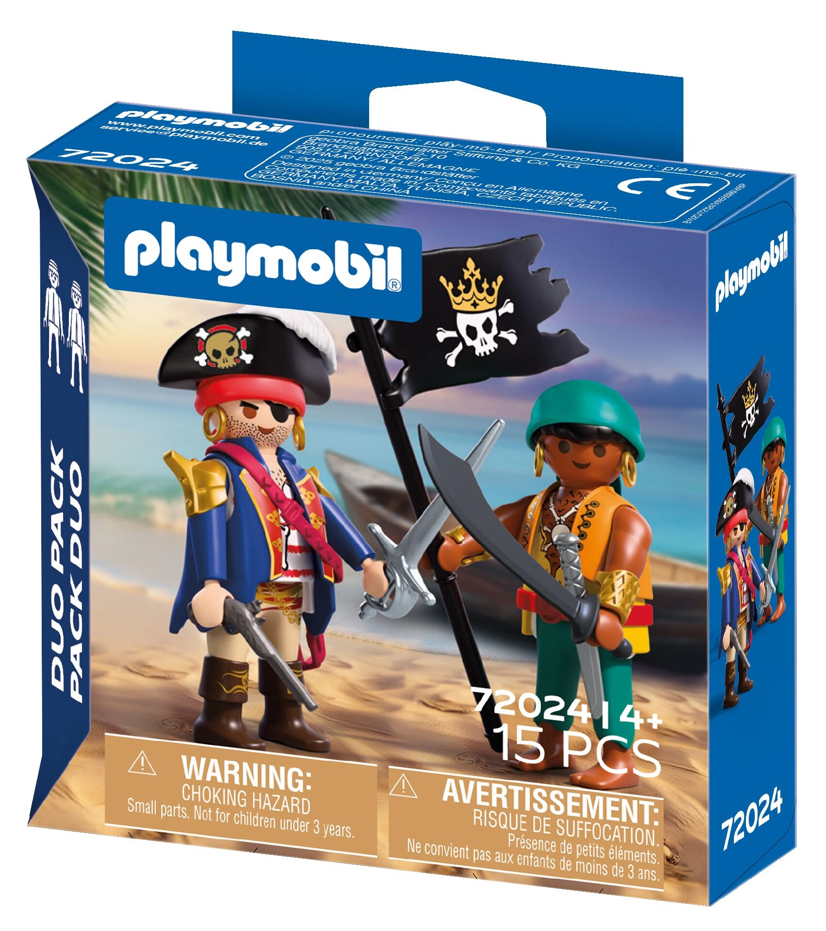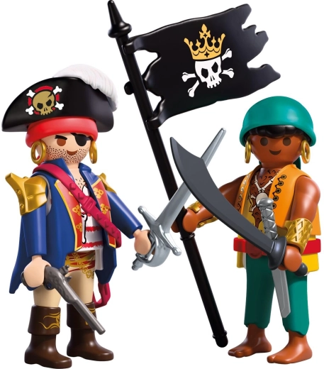 Dette kompakte sæt fra serien Duo Pack bringer to piratfigurer (ca. 7,5 cm), klar til dristige missioner. Med udstyr som hat, sabel, pistol og piratflag skaber du nemt actionfyldte kampscener og spændende skattejagter.