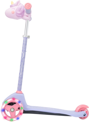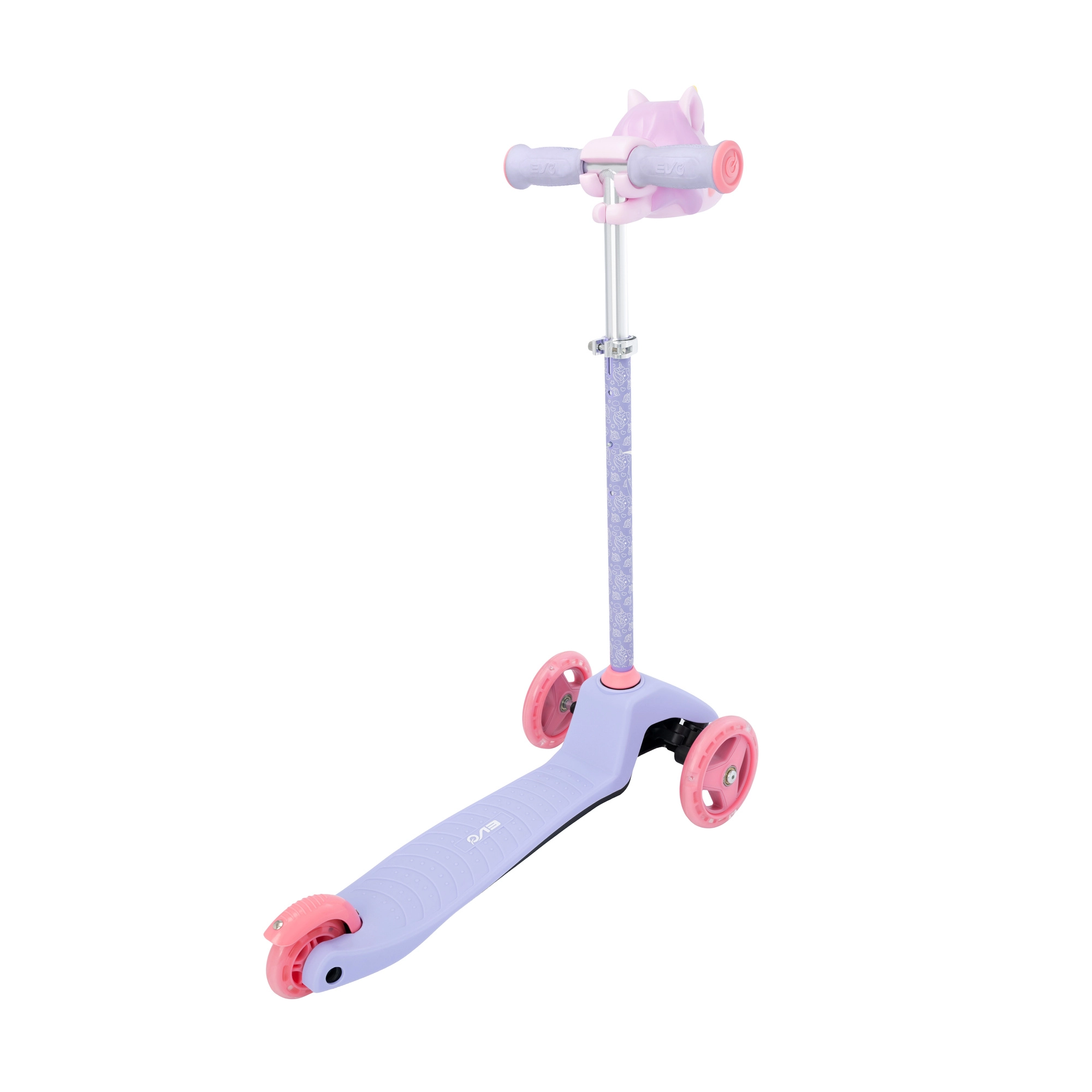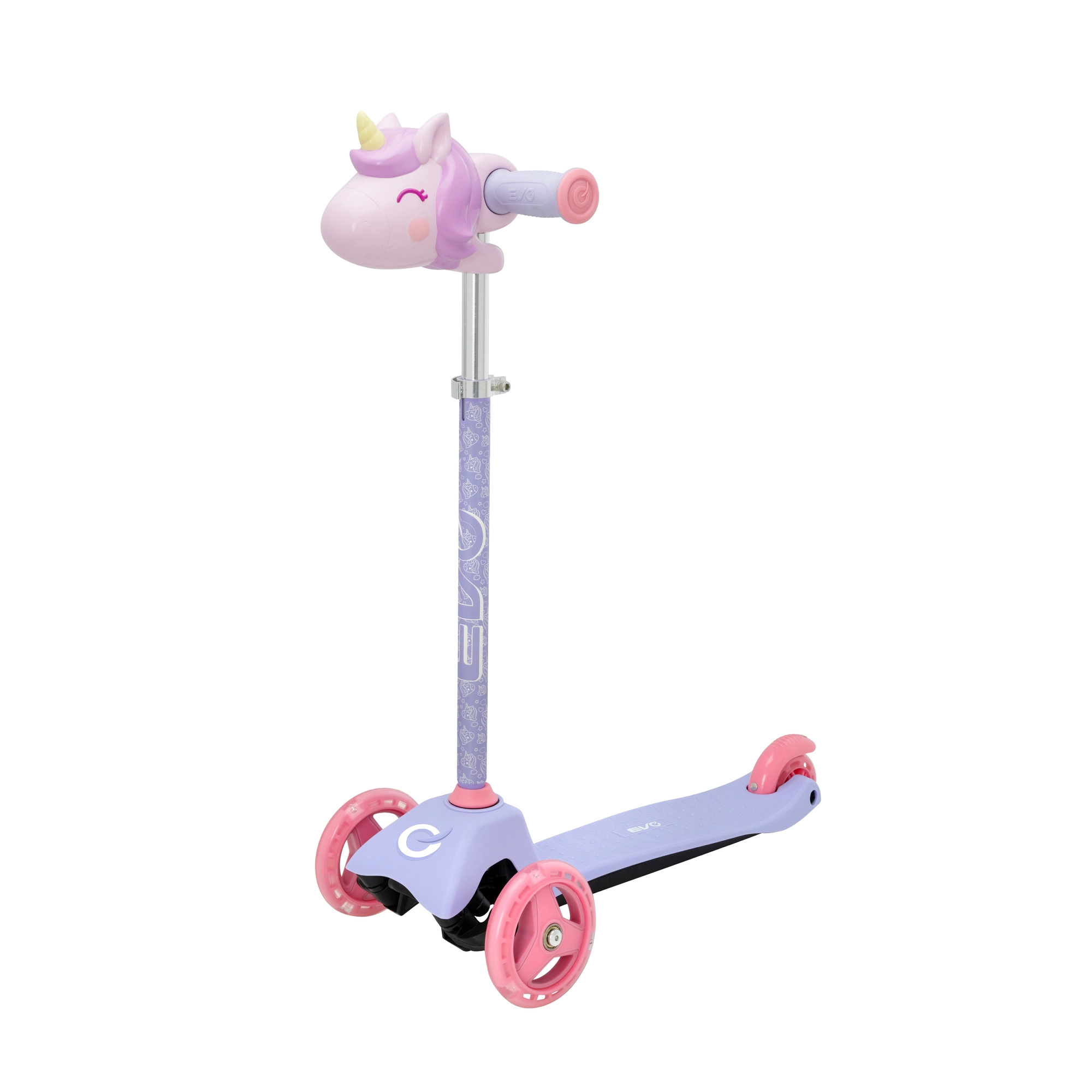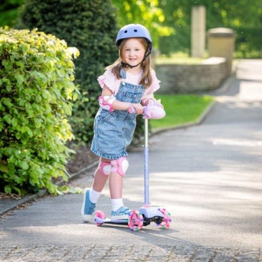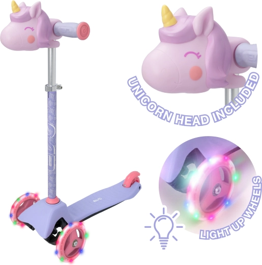 Det trehjulede børneløbehjul EVO Light Up Mini Cruiser med enhjørningemotiv vil glæde små ryttere allerede fra 2 år. Det tilbyder stabile tre hjul, bredt, lavt trinbræt, justerbart styr og lysende forhjul for endnu sjovere kørsel. Takket være balancestyring ved hældning udvikles balance og koordination, mens den bageste fodbremse sikrer sikker standsning.