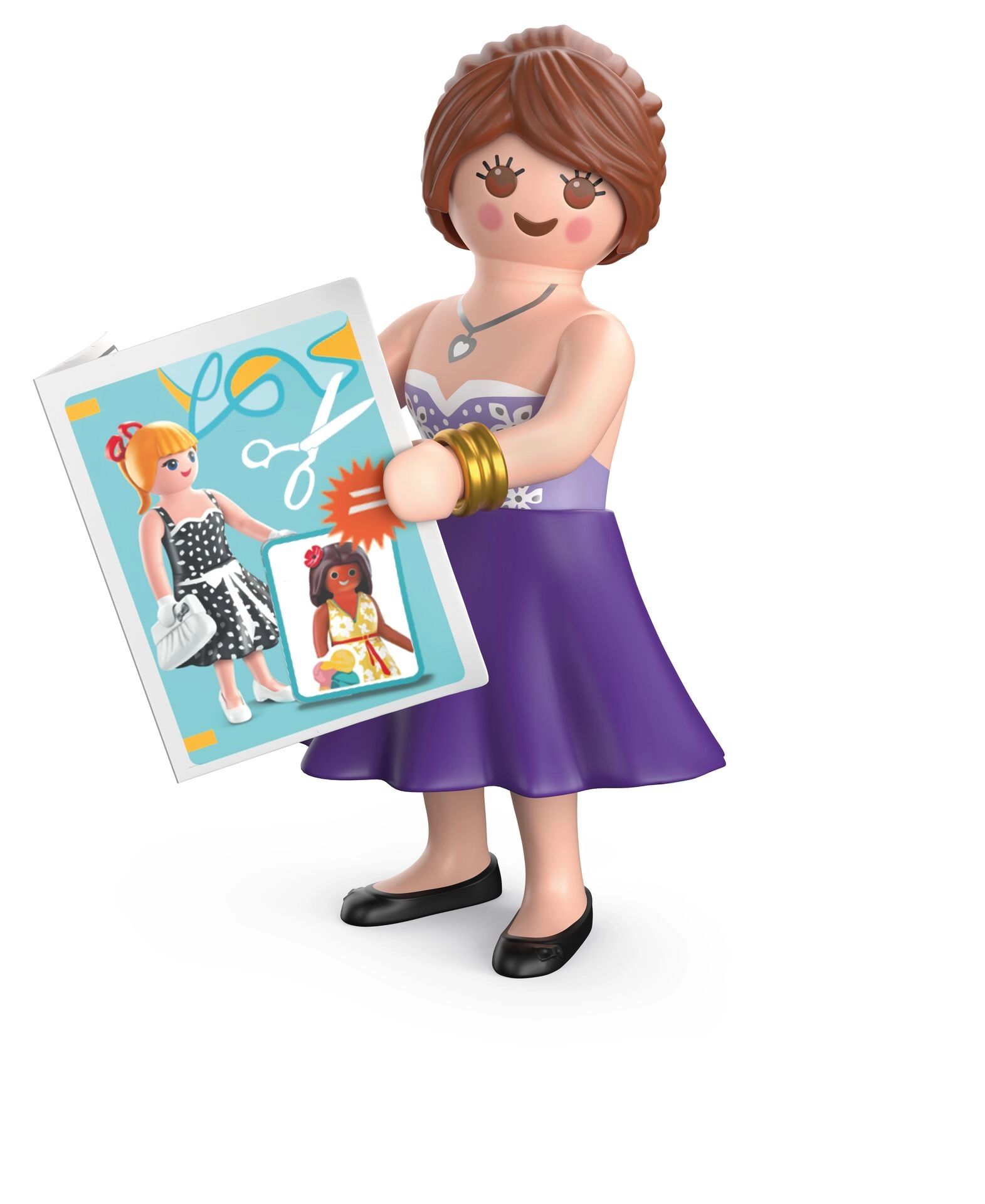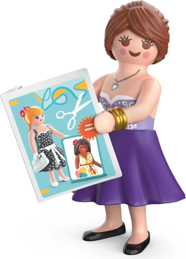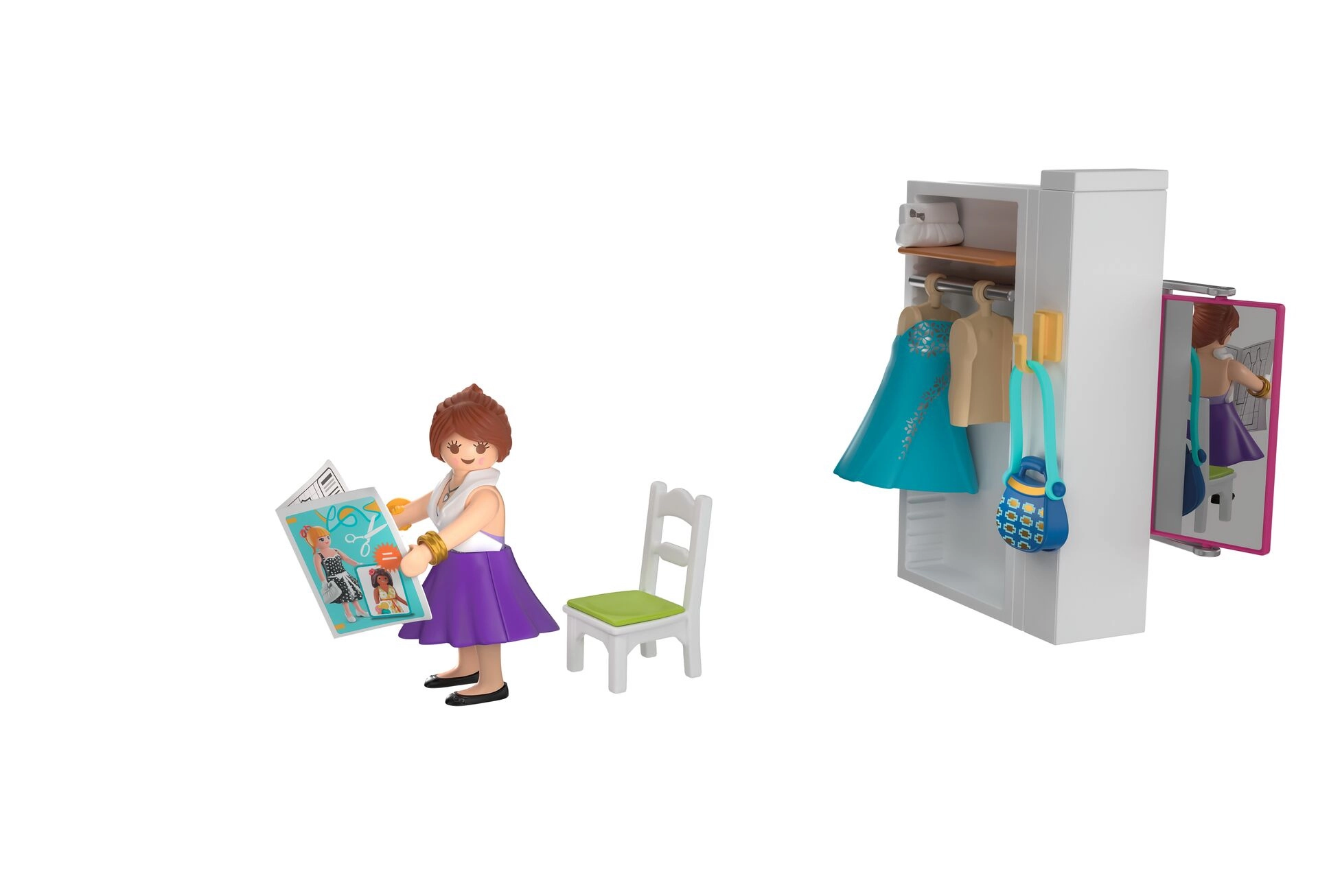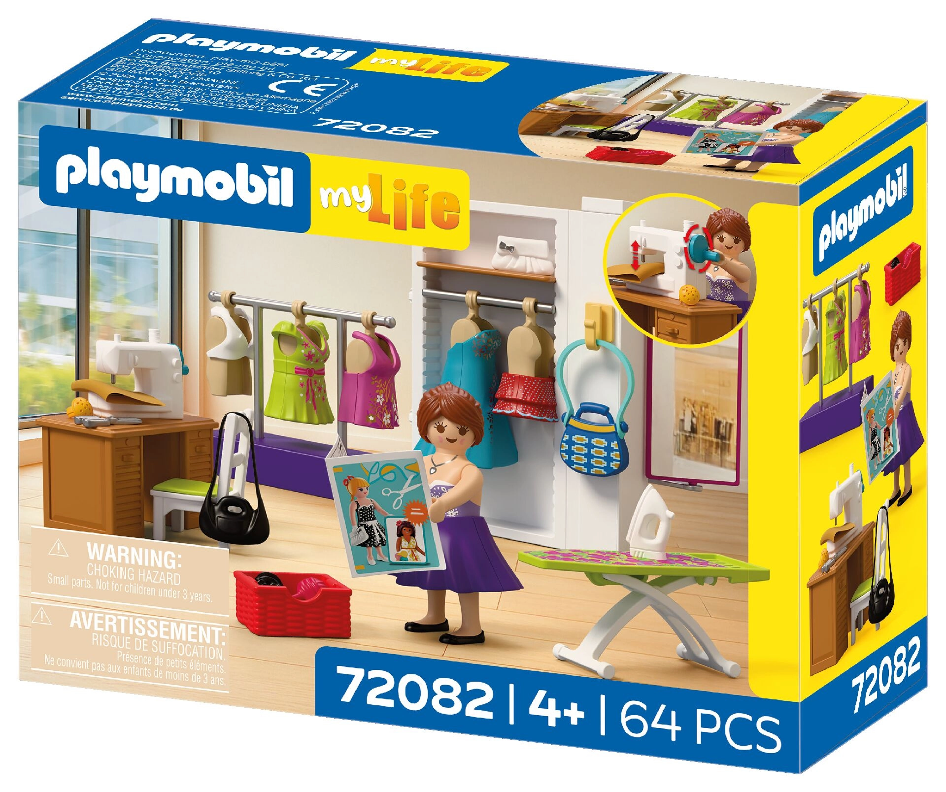 Alt til et komplet modeatelier er inkluderet: bord, stol, stoffer, saks, nålepude, nøgle garn, håndtasker og andre småting. Sættet består af 64 dele og kan kombineres med andre PLAYMOBIL-sæt for endnu rigere historier.