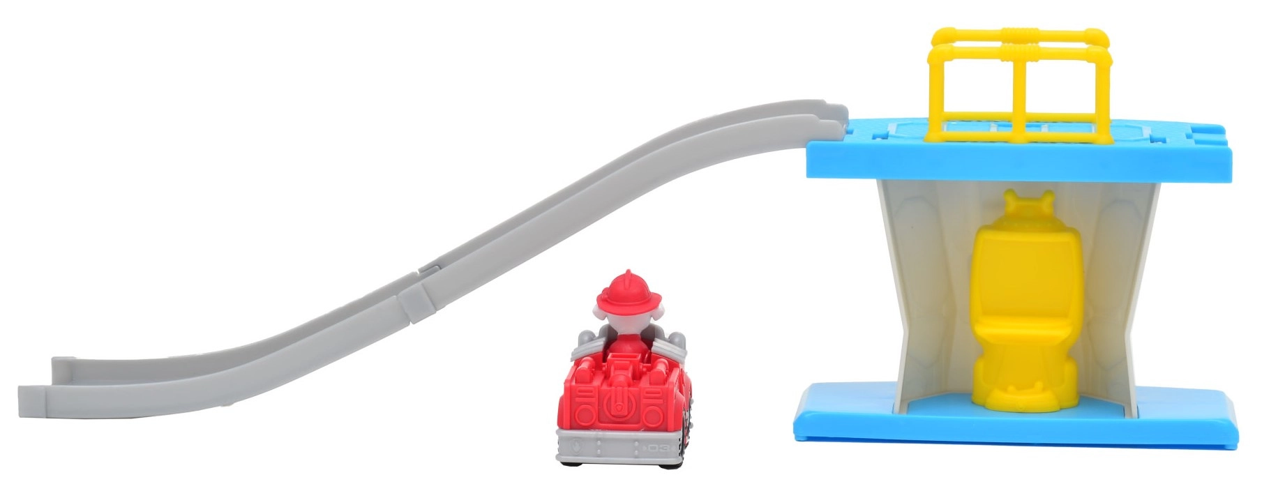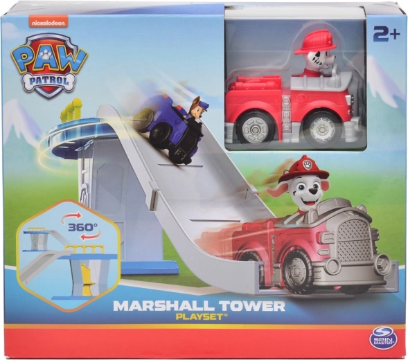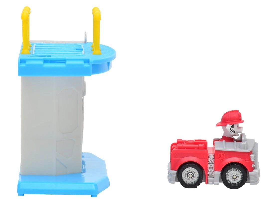 Tårnet med kørebane lader Marshalls køretøj glide jævnt ned – perfekt til dynamiske redningsscenarier og gentagen leg.