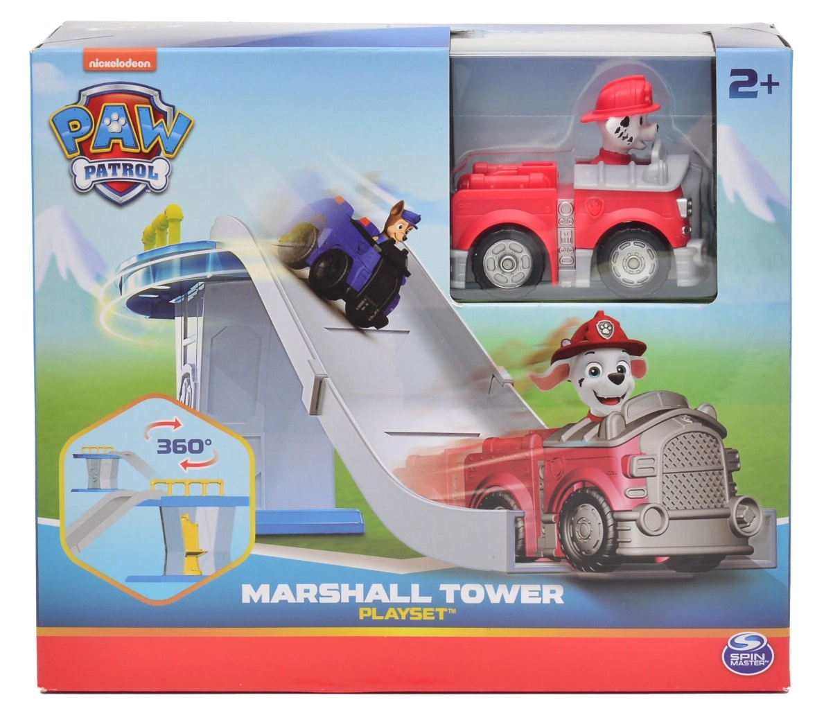 Dette farverige legesæt, inspireret af den populære serie PAW PATROL, giver børn sjov hver dag. Tårnet med en gliderampe lader køretøjet suse jævnt ned og rykke ud på redningsaktion. Med følger mini brandbilen Marshall med fast integreret hvalpefigur for en hurtig start på legen.