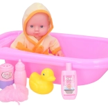 Sættet baby med badekar er ideelt til små omsorgspersoner. Sættet indeholder et baby på 24 cm og et badekar på 40 cm, hvilket er perfekt til sjov badesjov.