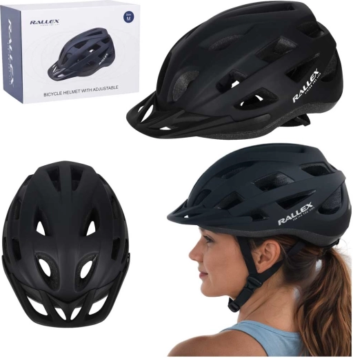 Cykelhjelm Rallex, justerbar, sort, størrelse M (54–58 cm)
