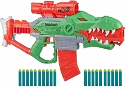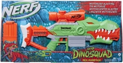 Gør dig klar til uforglemmelige eventyr med mægtige dinosaurer. Nerf DinoSquad Rex-Rampage kombinerer et T-Rex-inspireret design med høj skudkapacitet. Takket være det motoriserede system og et magasin til 10 darts kan du hurtigt og præcist ramme dine mål.