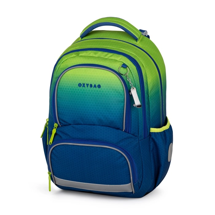 Den gennemtænkte organisering omfatter flere rum og lommer, inklusive to rummelige sidelommer og en holder til nøgler/skolechip, så intet bliver væk. Sættet suppleres af et rummeligt OXYBAG-penalhus og en let gymnastikpose i matchende ombré-design, ideel til opbevaring af skriveredskaber og sportstøj.