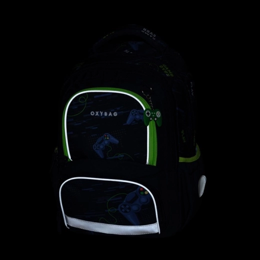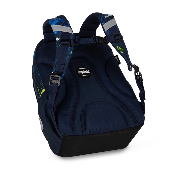 Skolesættet OXY NEXT Gamer er designet til komfort og sikkerhed for elever i 2. til 4. klasse. Rygsækken tilbyder ergonomisk udformet ryg, polstrede og justerbare skulderstropper med brystrem, som fordeler vægten jævnt. Med mange lommer – fra hovedrum til mindre organiseringselementer – har børn altid styr på deres ting.