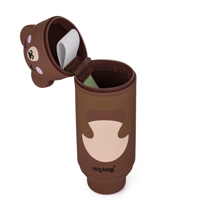 Sødt silikonepenalhus formet som en bjørn, som enhver skoleelev vil elske. Med 3D-ører ligner det en lille ven på pulten, det er lavet af et behageligt, let materiale og er nemt at rengøre. Indeni finder du et elastikbånd til viskelæder og en rumlig lynlåslomme til farveblyanter, kuglepenne og småting. Ekstra finesse: klem forsigtigt på penalhuset, og det forvandles straks til en blyantholder, der står stabilt på bordet.