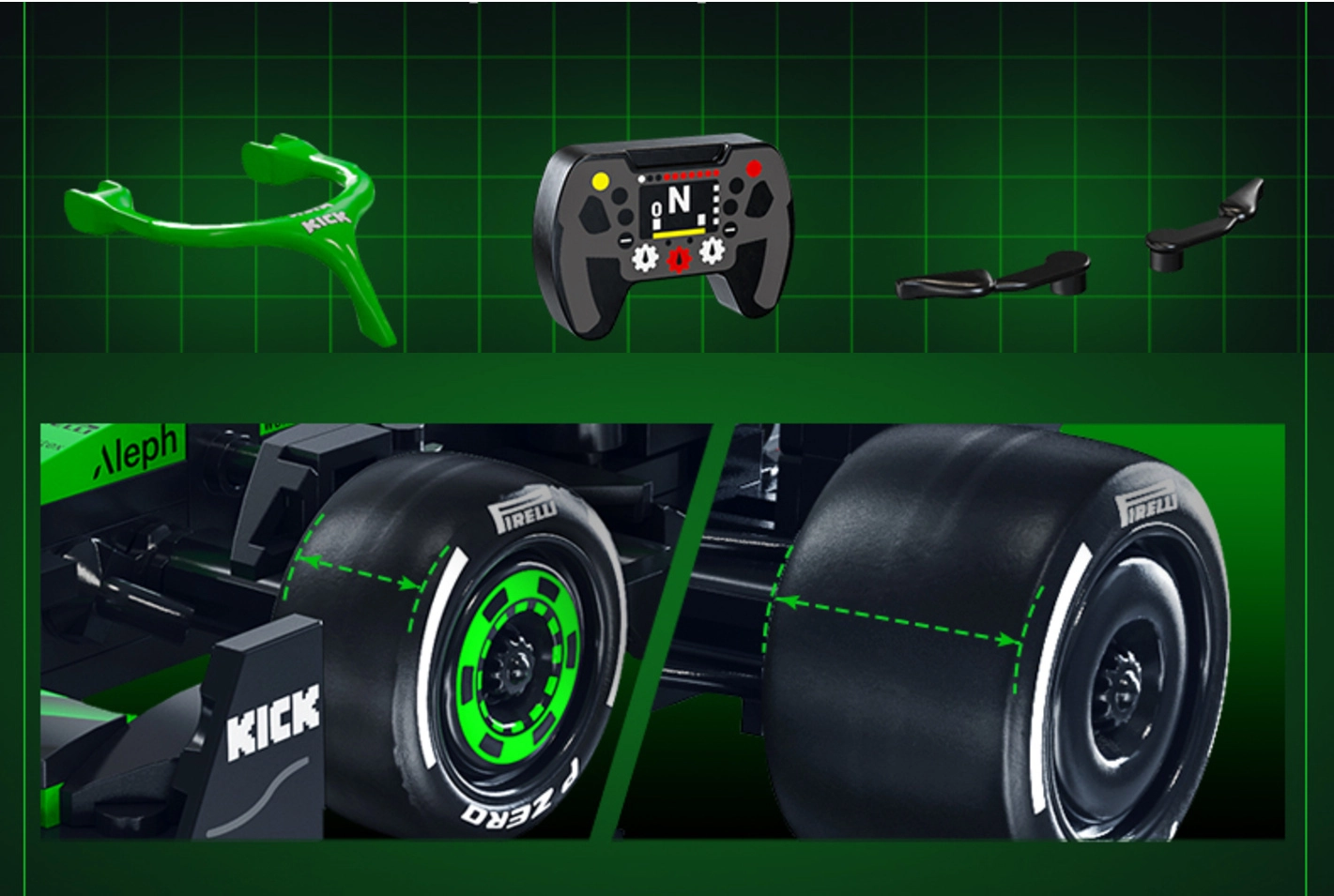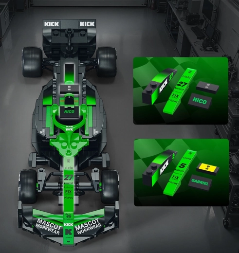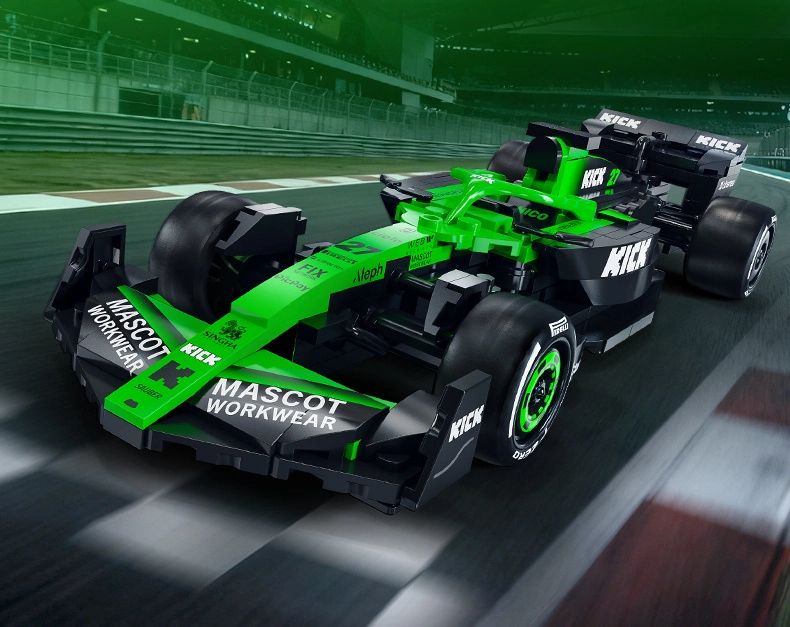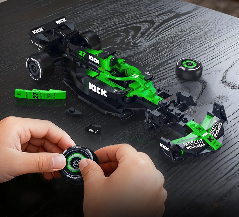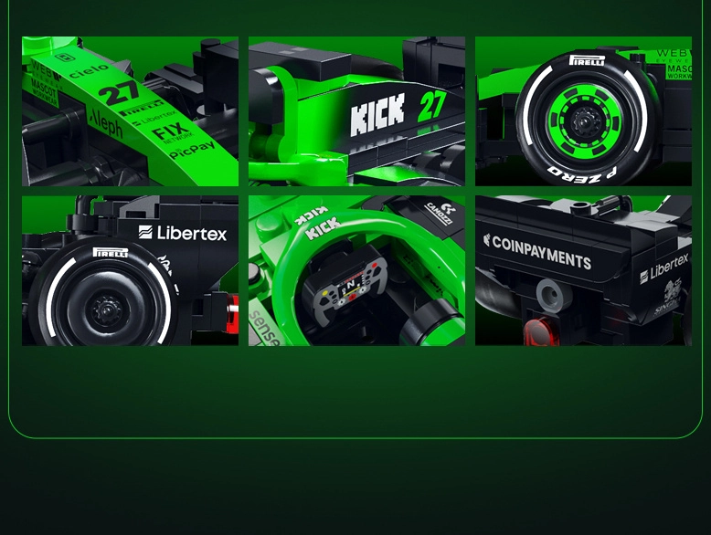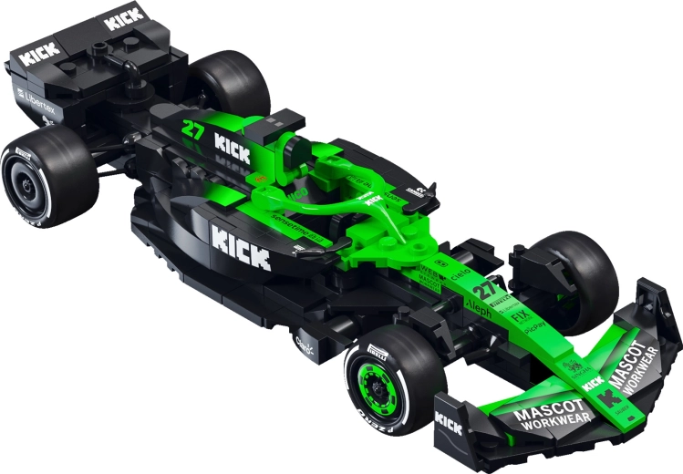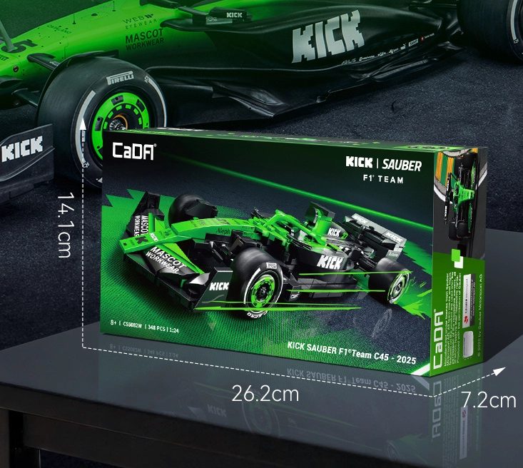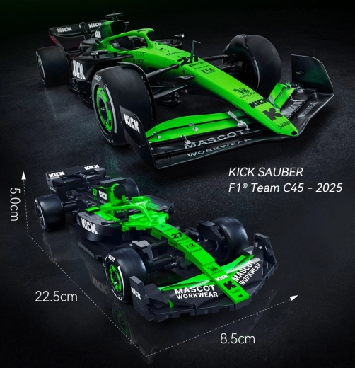 Nyd præcisionsbyggeri og racer-atmosfære med modellen KICK SAUBER F1 C45. Elegant sort–grøn farvekombination, aerodynamiske vinger og autentiske print skaber en overbevisende replika af en moderne formelbil. Takket være de funktionsdygtige hjul bevæger modellen sig let på flade overflader, så den er perfekt både til leg og vitrinen.