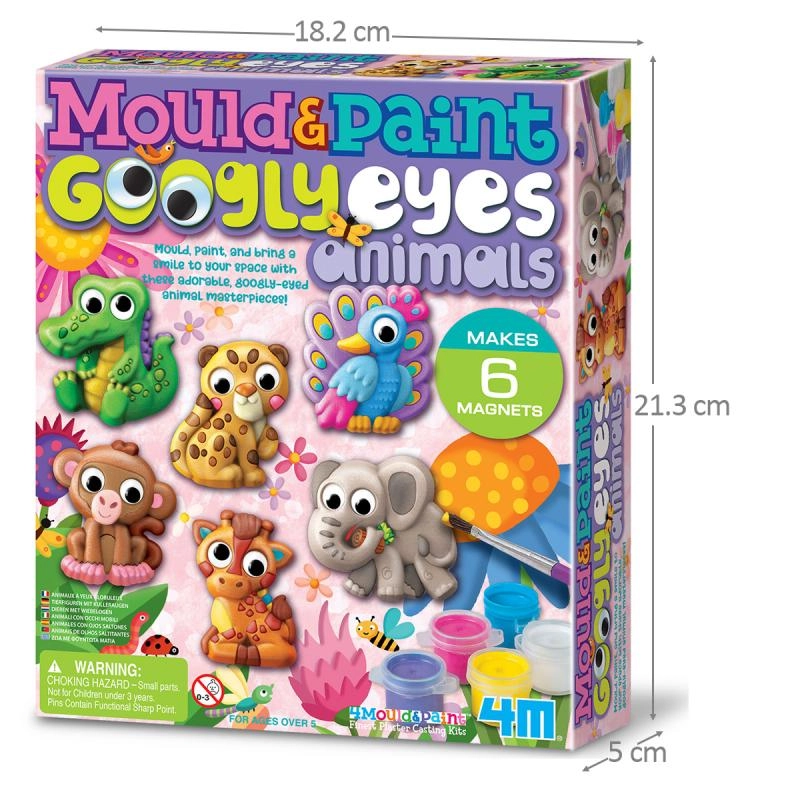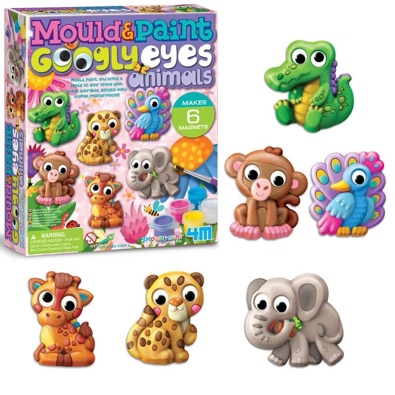 Børn kan lave op til 6 unikke magneter – for eksempel en elefant, abe, påfugl, giraf, leopard eller krokodille. De bevægelige øjne giver hver figur et legende udtryk, og de færdige dekorationer bliver hurtigt et yndet indslag på børneværelset.