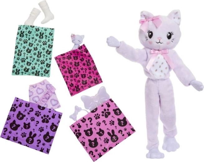 Oplev en legesyg overraskelse med Barbie Cutie Reveal i kostume som en lilla killing med en sød sløjfe. Der venter jer op til 10 overraskelser, inklusive modeaccessories, mini-killing og sjove 2-i-1-funktioner med farveskift for endnu mere kreativ leg.