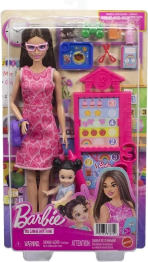 Opdag undervisningens verden med Barbie lærer-legesættet, som hjælper børn med at udvikle fantasi, rolleleg og læring gennem leg. Sættet indeholder en Barbie-dukke, en lille elev og masser af skoletilbehør som en tavle med vendbare kort, en lille stol, en rygsæk og kreative redskaber. Et fantastisk valg til en legeskoleklasse og historier fulde af kreativitet.