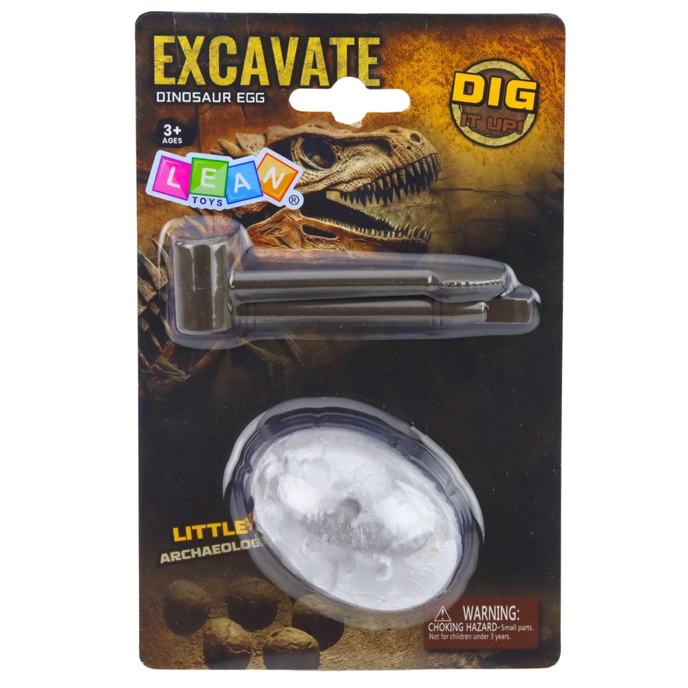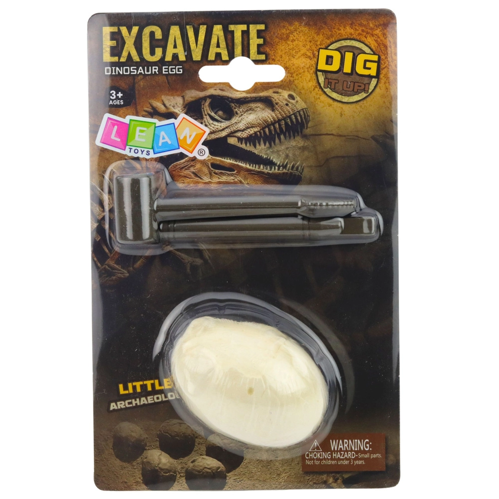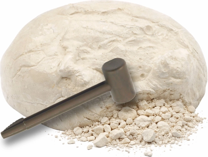 Dette interaktive arkæologisæt lader børn blive små palæontologer. Opgaven er gradvist at afdække en dinosaurfigur skjult i et gipsæg ved hjælp af det medfølgende mejsel og hammer. Det er nok at lægge ægget i blød i et par minutter, lade massen blødgøre og derefter forsigtigt fjerne lagene af den “stenlignende” overflade.