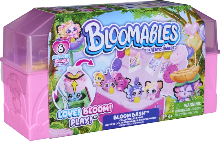 Oplev magien i kollektionen Hatchimals Bloomables med legesættet Bloom Bash. I en elegant lyserød udstillings- og opbevaringskuffert venter der 6 søde figurer, mere end 15 stykker tilbehør og sjovt vanddrevet afsløring af “blomstrende” knopper. Sæt vinger på, fold dansegulvet ud, og hold en magisk havefest – igen og igen.