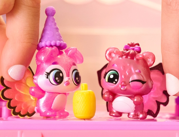 Efter afsløringen forvandler du sættet til et dansegulv, sætter farverige vinger på figurerne og pynter låget med Hatchi-Pics. Nu begynder festen!