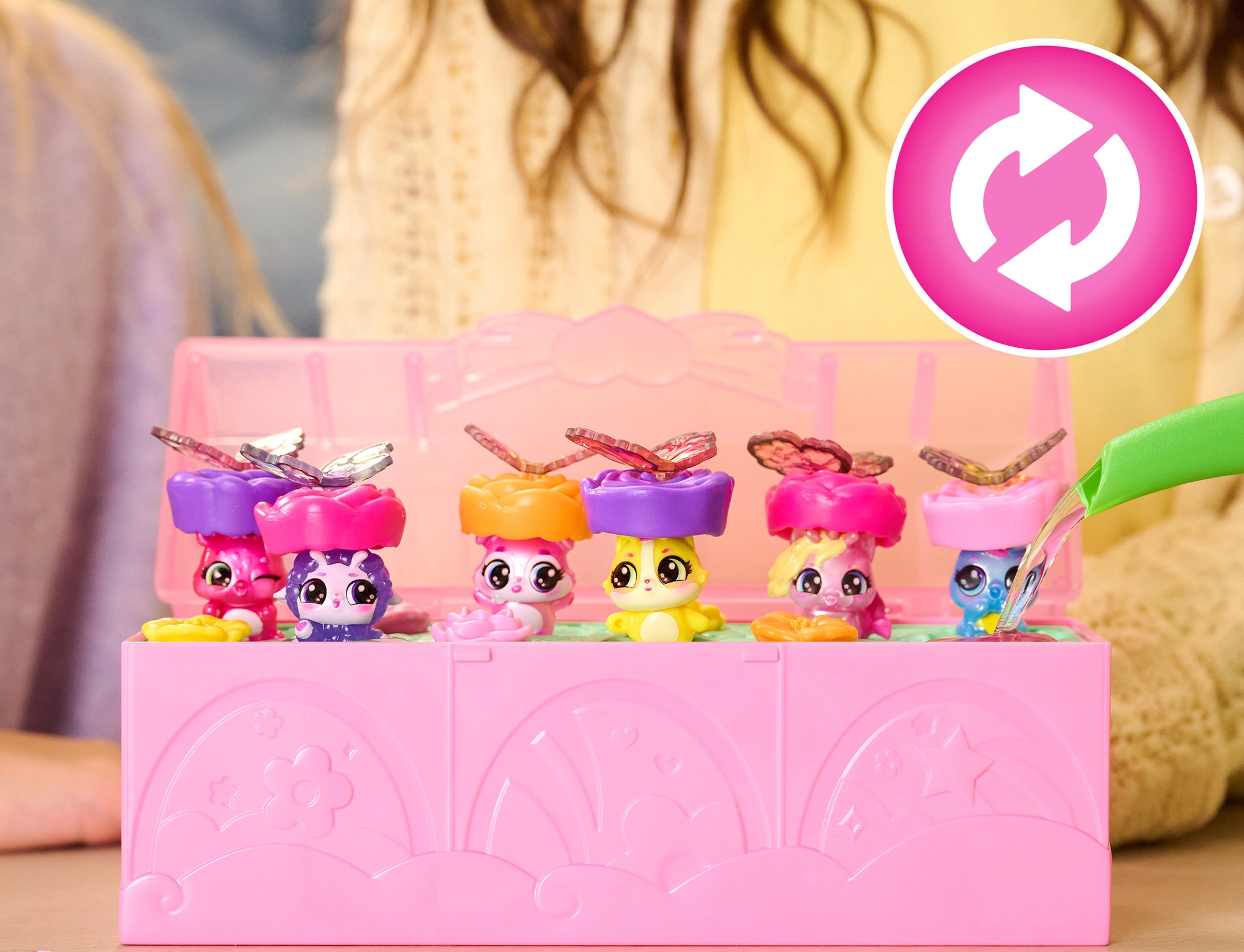 Hæld vand i kuffertens hjerte, og se, hvordan knopperne vokser og afslører de søde Bloomables. Det fortryllende overraskelsesøjeblik begejstrer hver gang I leger.